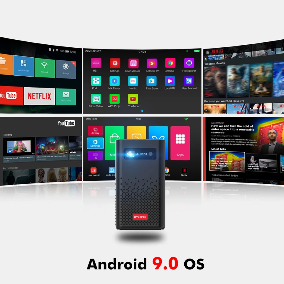 BYINTEK P20 Mini Portable Pico Smart Android Wifi 1080P Screenless TV lAsEr LED DLP Projector for Mobile Smartphone 4K Cinema Enjoy Cinema Everywhere Surprise Gift for LoverKids and Family Unique Advantages of BYINTEK P20 1 Built-in Smart Latest Android 90 OS 2 Wireless Display Movie Game for SmartphonePC 3 Built-in 5200mAh. Built-in 5200mAh Li-ion battery. Byintek Official Store has All Kinds of BYINTEK K9 Mini 1280x720P Portable Video Beamer LED Projector Proyector for 1080P 3D 4K Option Multi-Screen For IphoneBYINTEK P7 Pocket Portable Pico Smart Android Wifi 1080P 4K TV LAsEr Mini LED Home Theater DLP Projector for SmartphoneBYINTEK P20 Mini Portable Smart Android WIFI TV Video Pico LED DLP Projector for Full HD 1080P Mobile Smartphone.