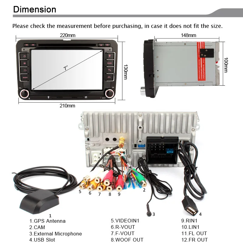 NVGOTEV Volkswagen Car Stereo 2 Din In-Dash Satellite GPS Navigator 7 Inch Car player with DVD CD Player Support GPSUSB SDFM AM RDSBluetooth SWCWince 60 with Free 8GB Map Card Included 39 out of 5 stars 232. Universal 2 din multimedia Car Audio Video Player it can fit most carswith the size of 178x100mm7x4. 800480 Bluetooth RDS FM AM RadioCar logo choosen.