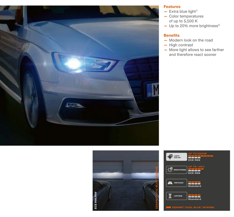With its extra blue high-contrast xenon light this automotive lamp appeals especially to customers who like the perfect combination of stylish and individual design with exceptional road illumination. The extra-blue xenon light with up to 6000 K. Osram has developed CBI Cool Blue Intense series which offers a clean.