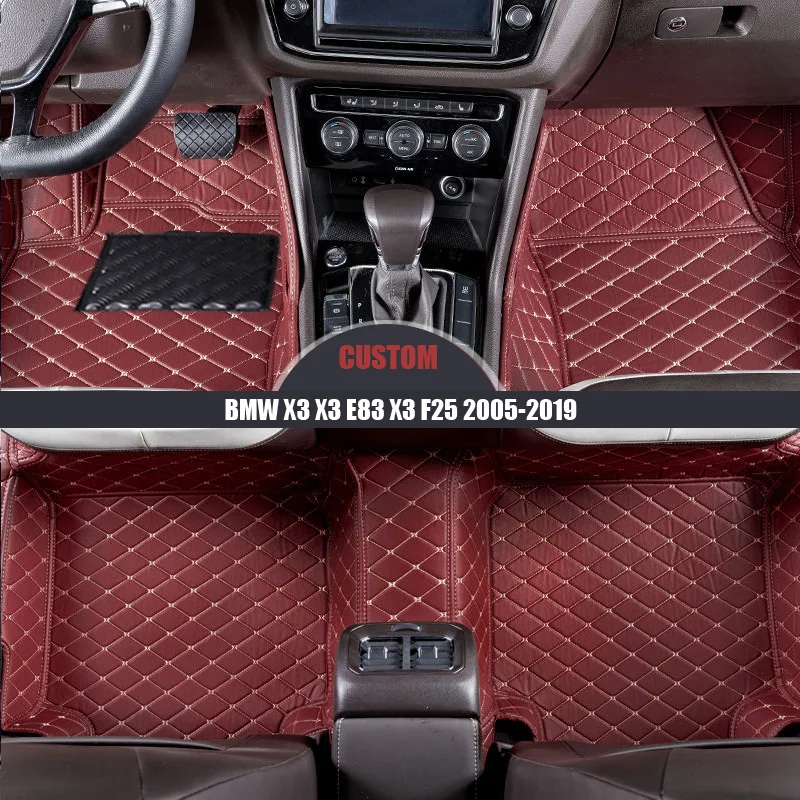 4000332946541 Custom Leather Car Floor Mats For BMW X3 X3 E83 F25 2005-2014 2015 2016 2017 2018 2019 Custom Foot Pads Auto Carpet Car Styling