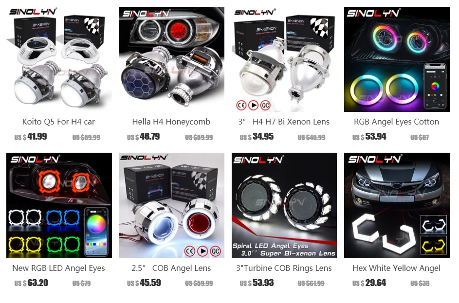 Sinolyn Projector Retrofit H1 H4 H7 Headlight Lenses Angel Eyes Bi-xenon Lens 30 Turn Signal Halo Car Lights Accessories Tuning Visit the store. Sinolyn H4 Hella 3R G5 Lens Projector Headlight Bi-xenon Blue Lenses 30 D2S D2H Xenon Light Bulbs For Cars Accessories Retrofit Item Description.
