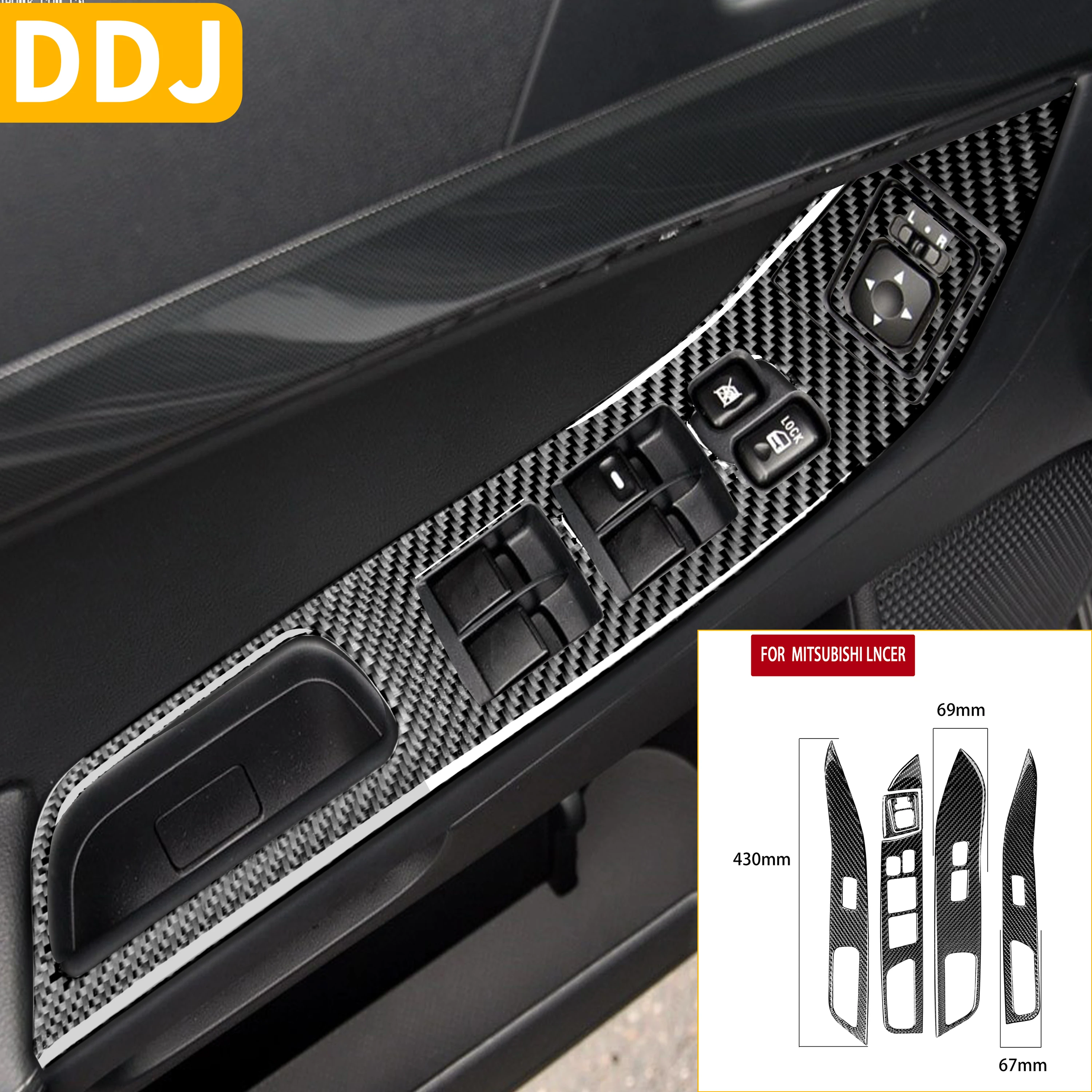 4001080612591 For Mitsubishi Lancer EVO X MR 2008-2015 Car Power Window Lift Switch Panel Carbon Fiber Sticker Door Button Trim Cover LHD RHD